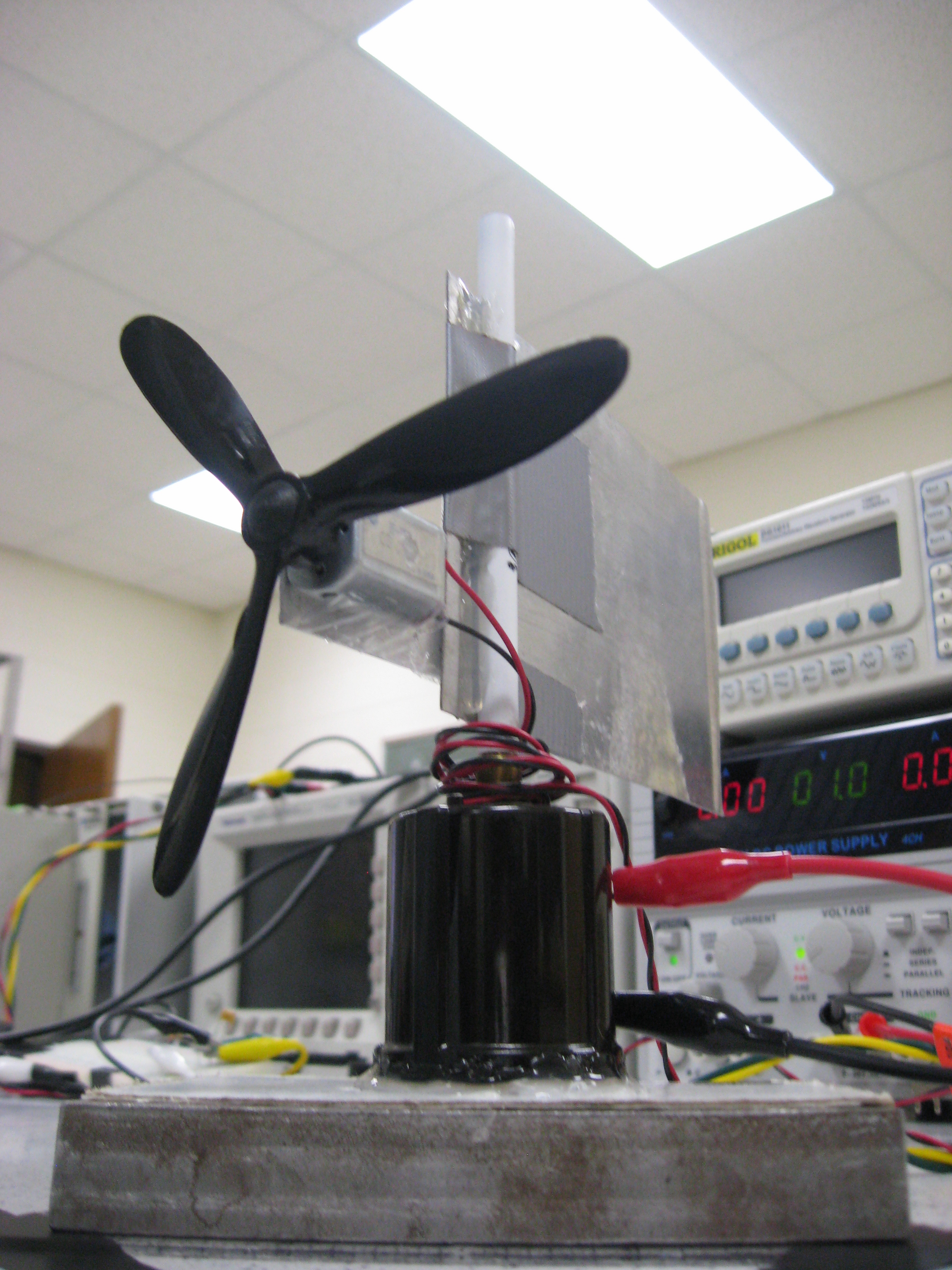 This device used a hobby propeller attached to a DC motor, mounted as a windmill on a potentiometer. The wind would cause the propeller to spin, creating a measurable voltage difference across the motor terminals. The resistance across the potentiometer indicated the direction.