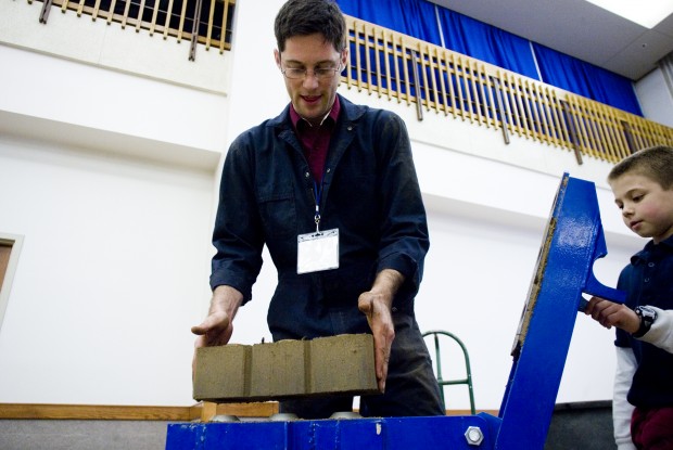 Then you use the same bar used for compression to force it back out of the mold. If you want a split brick, there is an attachment to pre-slide the bricks. When we were still testing, we checked things like accuracy of corners and the like.