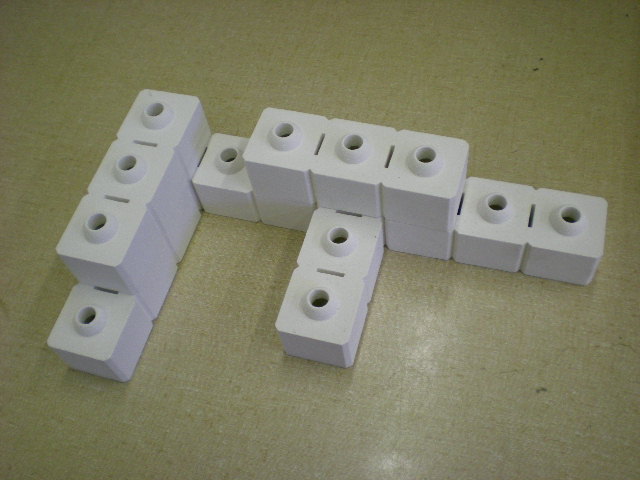Our design helps by almost eliminating the need for cement powder. It does this in three ways. First, typical bricks in Kenya are highly irregular, requiring copious amounts of mortar. Our design is much more uniform than these, reducing the need of a binding layer. Second, Kenyan construction often includes concrete pillars in the corners for added strength and binding of the walls. Our design would still need these for large homes, but it eliminates the need for these pillars in homes smaller than 30’x30′ by giving better interlocking through the corner structure. Finally, and most critically, it reduces the need for mortar by interlocking with each other, similar to Legos.