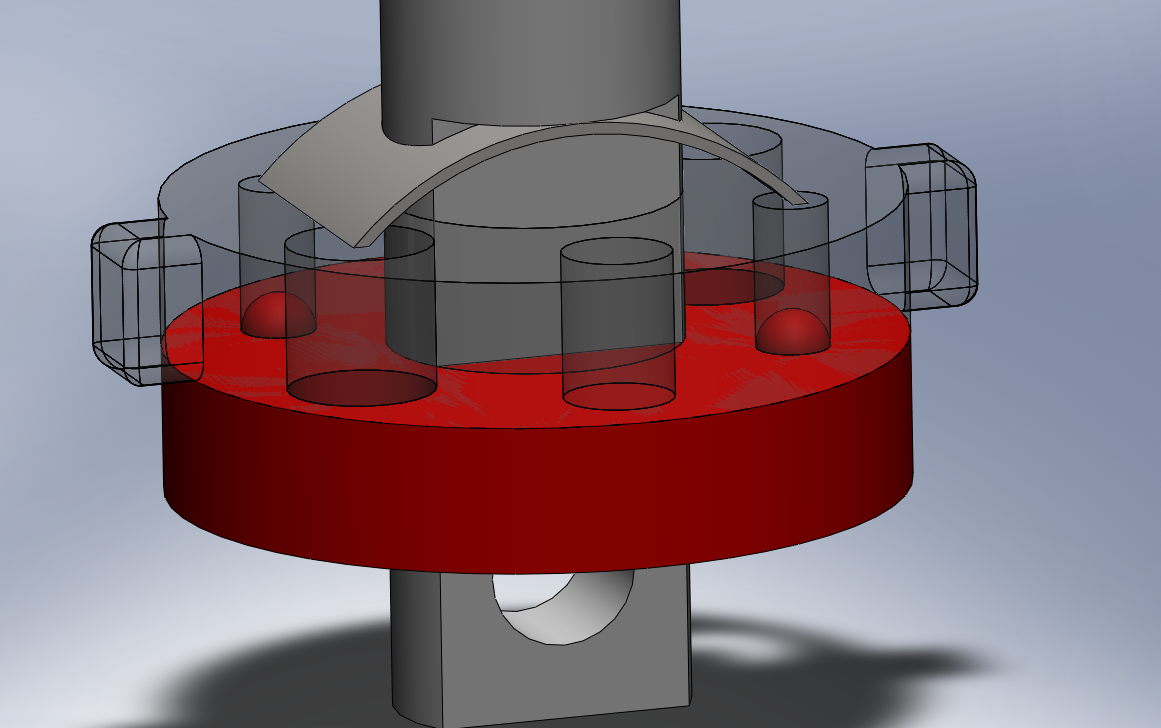 To demonstrate our design, our team printed a prototype using SLA at a 2:1 ratio. We then filled the device with water and gave it a spring. By turning the shaft with a wrench, there was a noticeable difference in damping between the three modes.