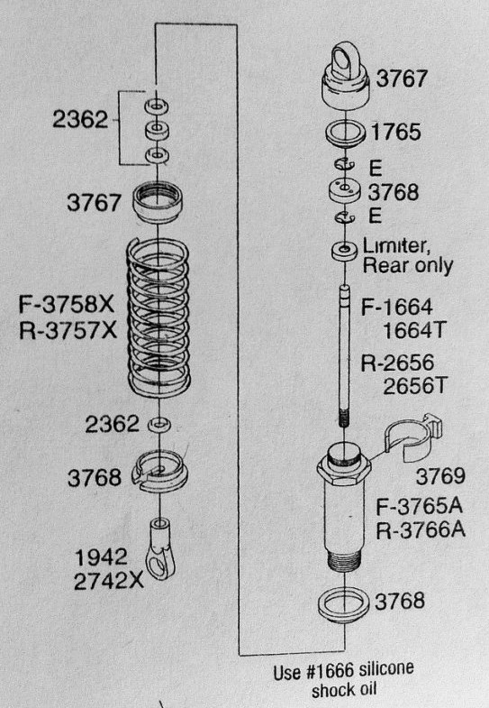 Image shows the schematic of a shock absorber for the Traxxis Stampede.
