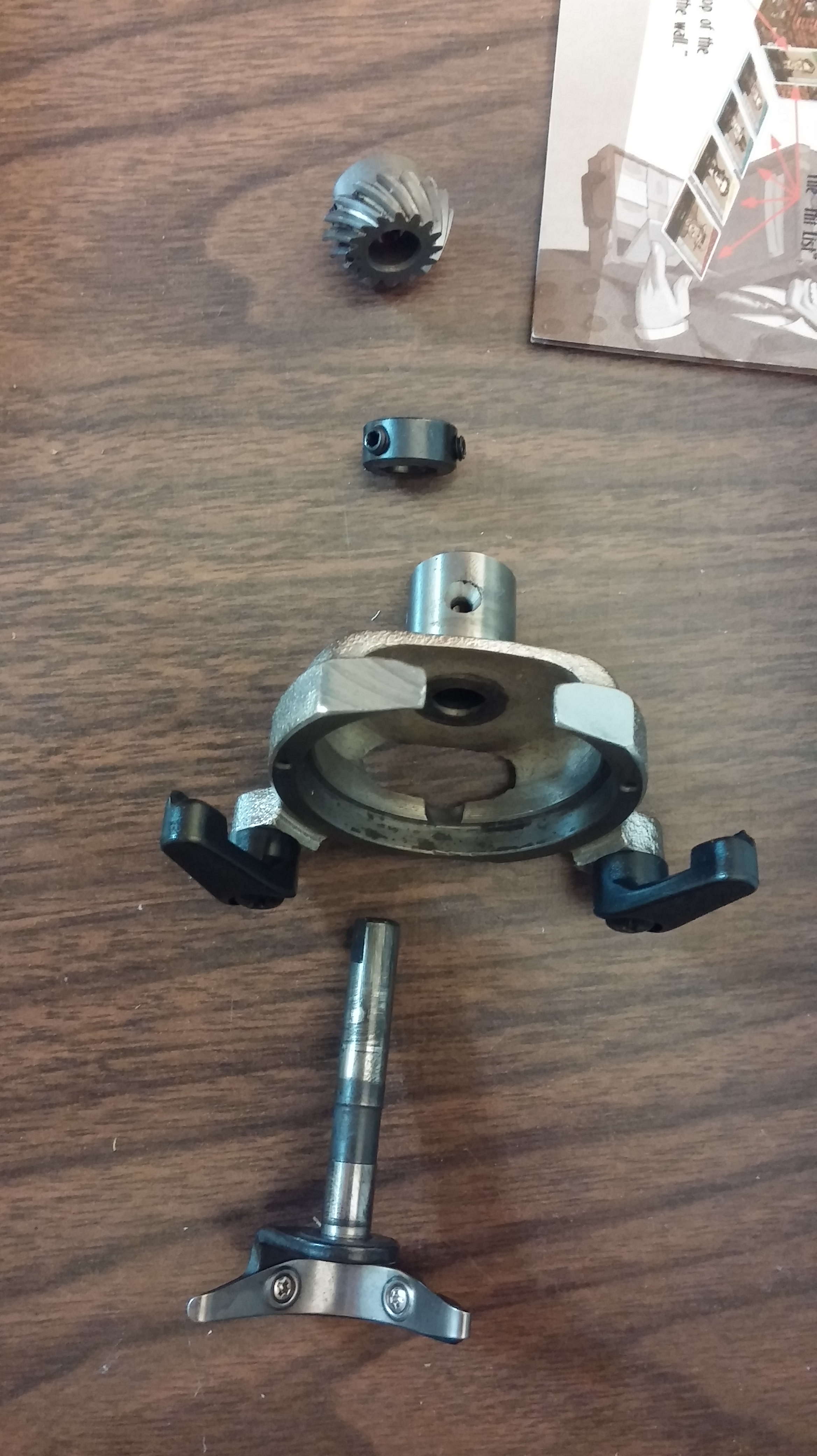The reason the plastic gear (not pictured) was chewed up was because the dog gear was sticking. So, I removed the offending parts to see what was wrong.