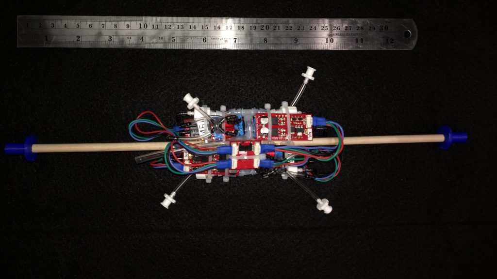 - All control hardware moved on-board (all prior fluidic tensegrities and most soft robots have off-board control hardware)